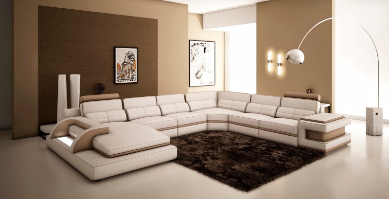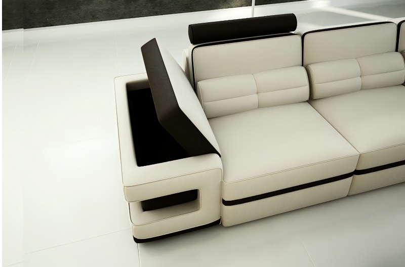 Denna stora L-formade lädersoffa är tillverkad av toppkvalitet importerad kohud med delikat och mjuk naturlig struktur. Den är i par med en minimalistisk sömlös design, som visar en lyxig struktur med låg nyckel.