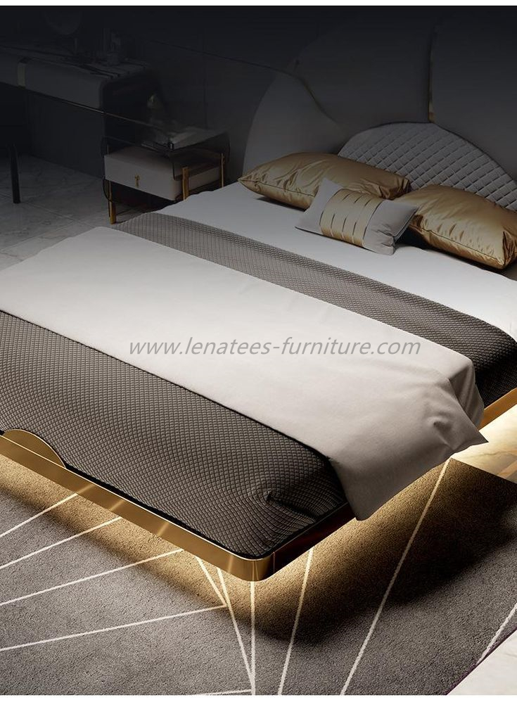 Som den professionella tillverkaren vill vi ge dig Lenatees Furniture® Luxury Bedroom Furniture Set. Och vi kommer att erbjuda dig den bästa servicen efter försäljning och snabb leverans. Denna moderna lätta deluxe -säng kommer att lägga lyster till ditt sovrum.