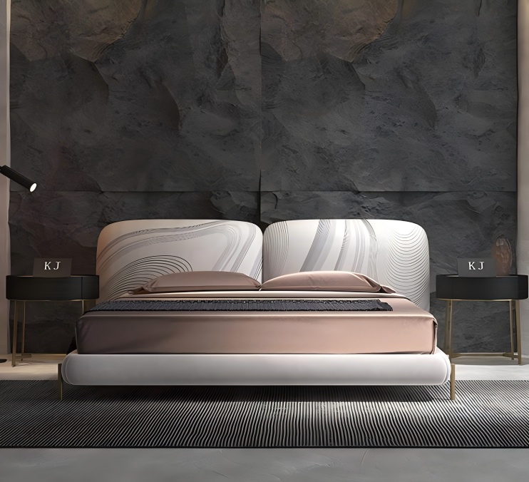 Valt italiensk importerad toppskiktskål, med frostad tryckteknik, presenterar en delikat matt konsistens, varm och hudvänlig, repbeständig och slitstöd och lätt att ta hand om. Minimalistiska linjer med tredimensionell quiltningsdesign Tolkar den lågmälda lyxestetiken för italiensk ljus lyx. Den 45 ° gyllene lutningsvinkeln på huvudgavlan är ergonomisk, så du känner dig inte trött även om du lutar dig på den länge.